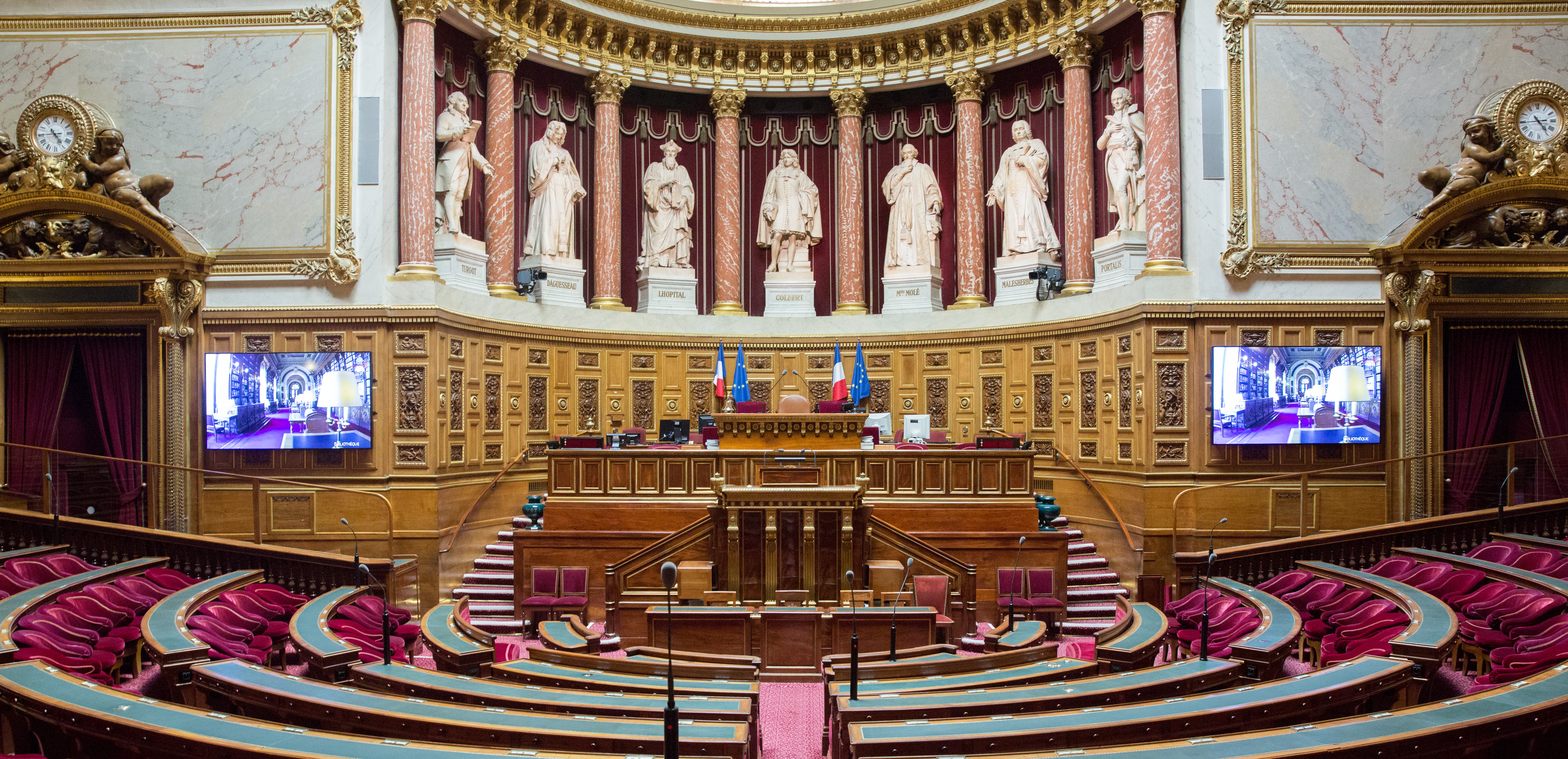 I entered in a very plain and dull room that was invested by members of the French government, Emmanuel Macron included. The place was supposed to be something like a senate room with seats all around the center ; but it clearly looked like a very abandoned and claustrophobic bunker or cave in a naked rectangular layout, with politicians counted by only a dozen or two. Not only that : The center and the edges of the room were made of a bottomless dark abyss, only slightly filled by narrow paths between the desks and seats.