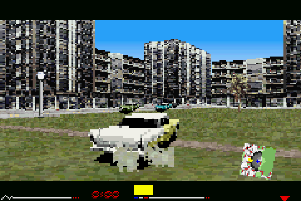 — Thunder Alley, developped by Pronto Games and released by XS Games only in the U.S. on June 13th 2004, is the only other Gameboy Advance game featuring the engine of Driver 2 Advance going by the X2 Engine. The game is a one-to-one copy of Driver 2 Advance as it features same gameplay, same graphical elements such as Map tiles, sky gradient, wheel smoke, orange cones and road pillars Sprites, same menu selection and car engines sounds, same HUD, Main Menu and Pause Menu layouts — configured into a generic racing game. Yet a terribly poor one looking like a joke of a game, featuring dreadful musics, only 4 tracks, a « Secret » Derby mode with only one arena, no Multiplayer and no Highscores (the game size is only 4Mb and probably had no save battery to make the cartridge even cheaper).